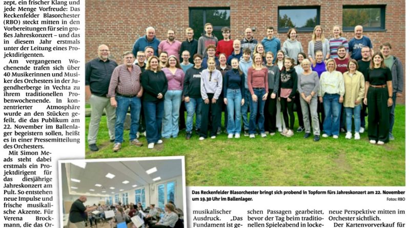 WeiterlesenAm vergangenen Wochenende war die Jugend des Reckenfelder Blasorchesters auf Probenfahrt. Dabei hat das Jugendorchester fünf neue Stücke erlernt, die von einer Planeten-Hymne bis